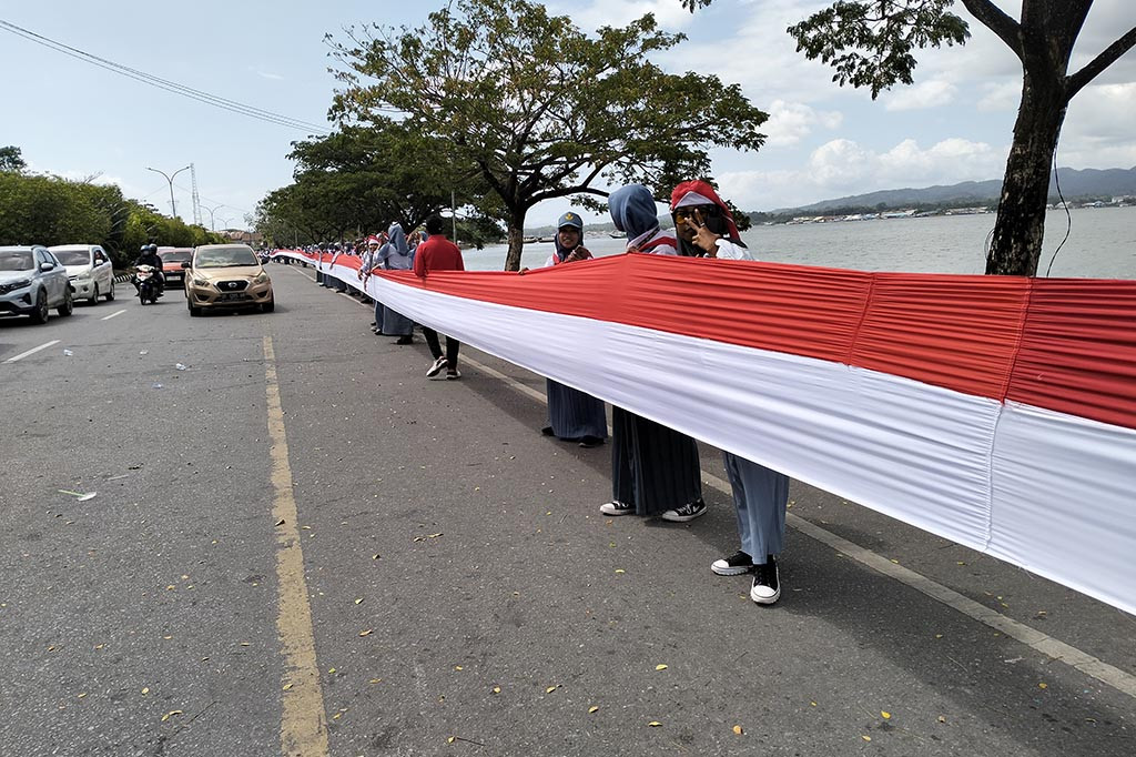 "Pagi hari ini kita menyaksikan moment bersejarah dalam merayakan kemerdekaan. Kita mengibarkan bendera merah putih sepanjang 17 km sebagai perayaan kemerdekaan Indonesia," sambung Ali Mazi.