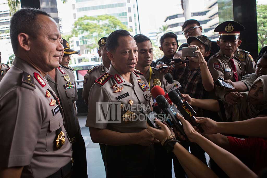 Metrotvnews.com, Jakarta: Kapolri Jenderal Tito Karnavian menyambangi Komisi Pemberantasan Korupsi (KPK) di Gedung KPK, Jumat (19/8/3016). Kedatangan Kapolri bersama sejumlah petinggi Polri tersebut dalam rangka menjalin silaturahmi dengan KPK. MI/Atet Dwi Pramadia Cek Berita dan Artikel yang lain di Google News