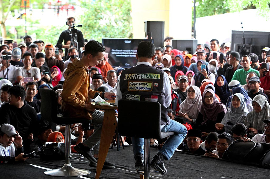 Di hadapan para pendukungnya, Anies bercerita saat dia berkunjung ke Kota Bukittinggi semasa kuliah untuk melihat langsung Jam Gadang yang menjadi ikon kota wisata tersebut.