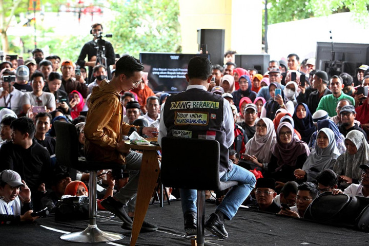 Setelah berdialog dengan para pendukungnya, Anies melanjutkan agenda kampanye ke Sawah Solok Padang Lindang, lalu bertemu para simpatisan di Gedung Olahraga Tanjung Paku, Kota Solok. MI/Susanto Cek Berita dan Artikel yang lain di Google News