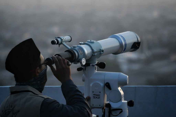 Tim Falakiyah Kementerian Agama memantau hilal di kawasan Masjid Hasyim Asy'ari, Jakarta, Selasa, 11 Mei 2021.