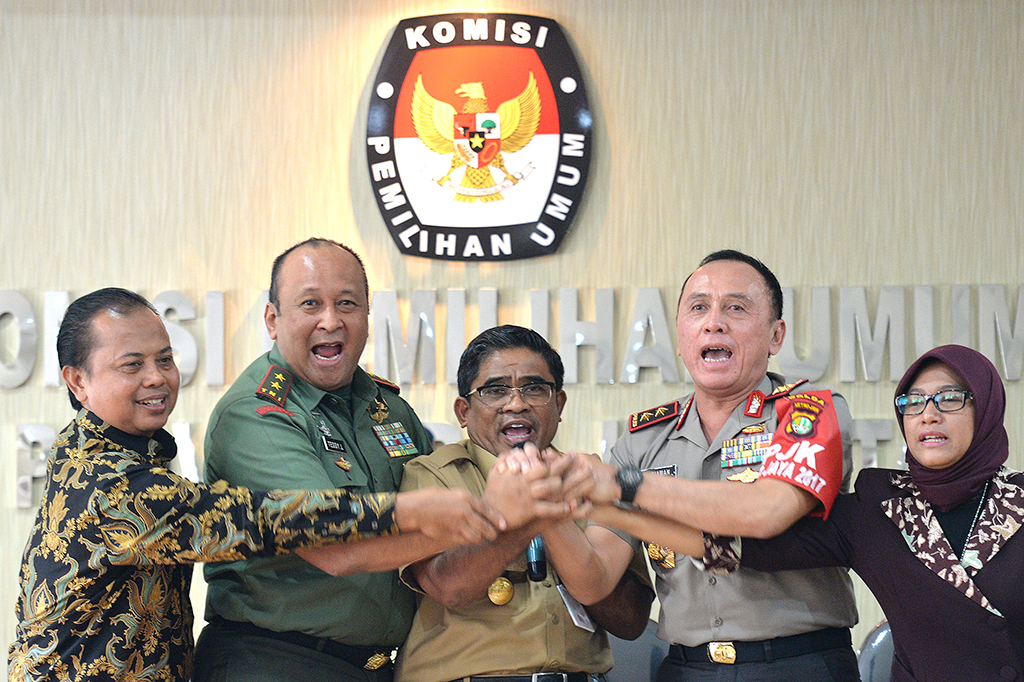 Metrotvnews.com, Jakarta: Kapolda Metro Jaya Irjen Pol M. Iriawan mengimbau masyarakat yang akan berunjuk rasa menjelang pelaksaan Pilkada DKI Jakarta harus mematuhi aturan perundang-undangan yang berlaku agar pelaksanaan Pilkada berjalan aman, damai dan sukses. Pernyataan itu dikatakannya dalam konferensi pers bersama Pangdam Jaya, Plt Gubernur DKI Jakarta, Ketua KPU DKI Jakarta, dan Ketua Bawaslu DKI Jakarta, Selasa (7/2/2017). ANTARA/Widodo S. Jusuf Cek Berita dan Artikel yang lain di Google News
