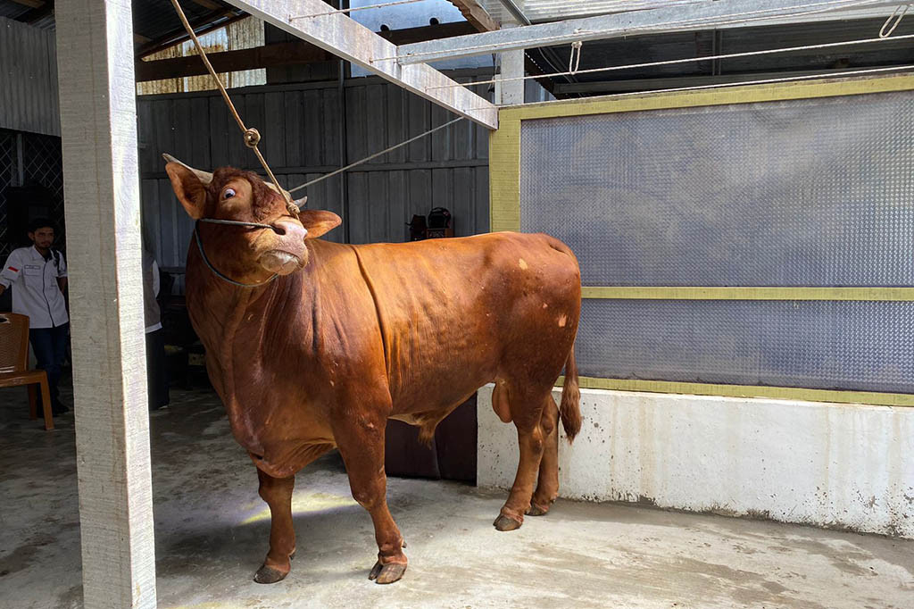 "Sapi ini sudah diuji laboratorium, dari kesehatannya bebas PMK dan lain-lain sudah ada hasilnya sehat. Alhamdulillah tim dari ke Presidenjuga sudah lihat dan nantinya sapi Simental ini akan diserahkan ke Masjid