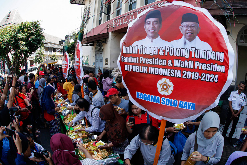 Solo: Keluarga Alumni Universitas Gadjah Mada (Kagama) bersama warga Solo menggelar syukuran dan potong nasi tumpeng menjelang pelantikan Presiden Joko Widodo dan Ma'ruf Amin. Acara digelar di Pasar Gede Solo, Jateng, Kamis, 17 Oktober 2019. MI/Antara Cek Berita dan Artikel yang lain di Google News