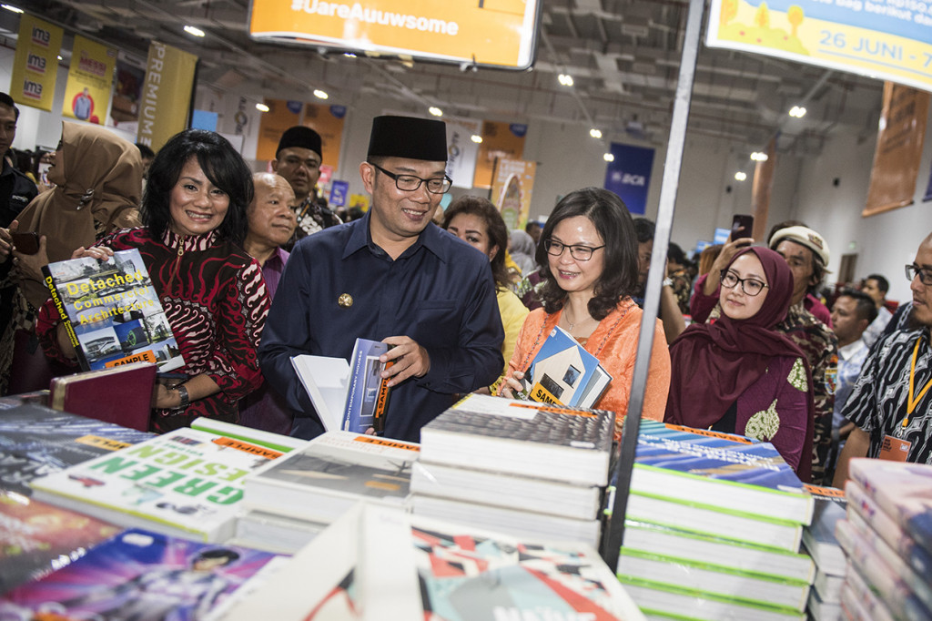 Bandung: Gubernur Jawa Barat Ridwan Kamil membuka bazar buku Big Bad Wolf 2019 di Kota Baru Parahyangan, Padalarang, Kabupaten Bandung Barat (KBB), Kamis, 27 Juni 2019. Bazar buku terbesar di dunia yang diselenggarakan pada 28 Juni hingga 8 Juli di Bandung, bertujuan untuk meningkatkan minat baca bagi masyarakat dan referensi bacaan berkualitas. Antara Foto/M Agung Rajasa