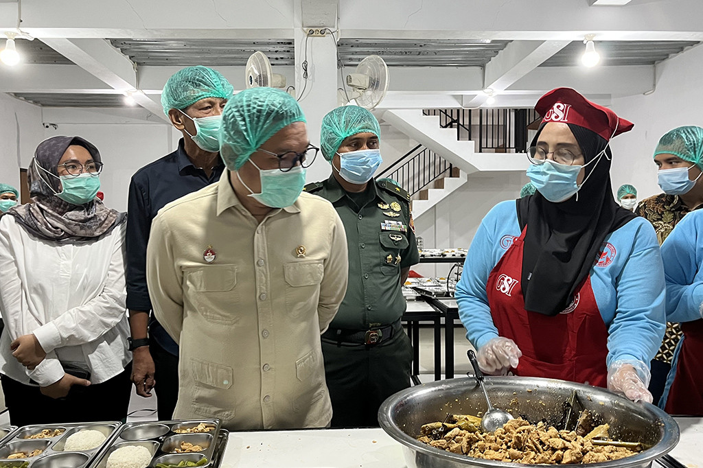 Jakarta: Gubernur Lembaga Ketahanan Nasional (Lemhanas) Ace Hasan Syadzily meninjau dapur makan bergizi gratis (MBG) di Kampung Kebayunan, Tapos, Depok, Jawa Barat, Senin pagi, 6 Januari 2025. Dapur terbesar di Depok ini disebut bersih dan sesuai standar Badan Gizi Nasional (BGN).