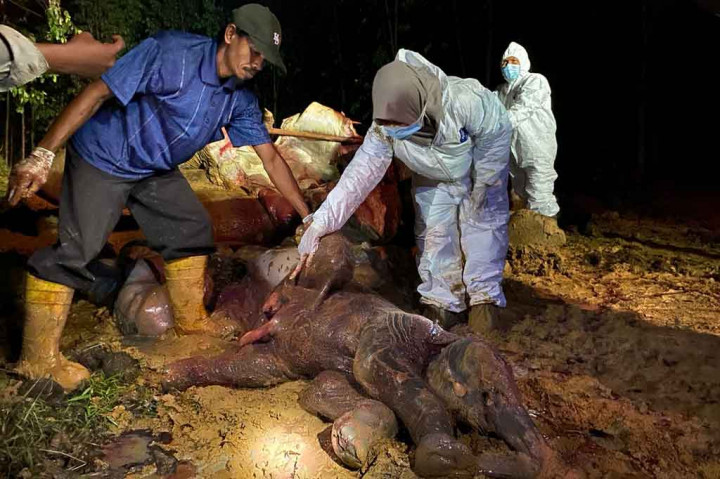 Ia menjelaskan, tim medis mengambil sampel hati, dinding usus, paru, dan kotoran gajah tersebut untuk dilakukan uji laboratorium. Selanjutnya, dengan bantuan alat berat konsesi perusahaan, tim gabungan lalu menguburkan bangkai gajah di lokasi.