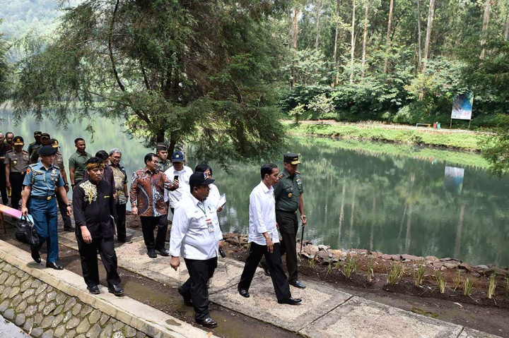 Bandung: Presiden RI Joko Widodo menuturkan penanganan penanggulangan pencemaran dan kerusakan Daerah Aliran Sungai (DAS) Citarum akan menjadi percontohan bagi penanganan DAS lainnya seperti DAS Bengawan Solo dan DAS Brantas. ANTARA/Puspa Perwitasari Cek Berita dan Artikel yang lain di Google News