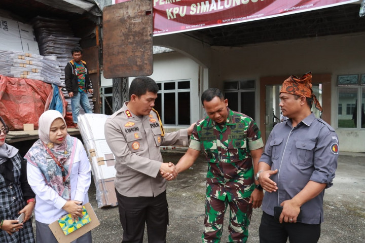 Simalungun: Memastikan keamanan dan kesiapan logistik Pemilu, Kapolres Simalungun AKBP Ronald F.C. Sipayung bersama Dandim 0207/Simalungun, Letkol Inf. Hadrianus Yossy melakukan pengecekan logistik Pemilu di Kantor Komisi Pemilihan Umum (KPU) Kabupaten Simalungun.