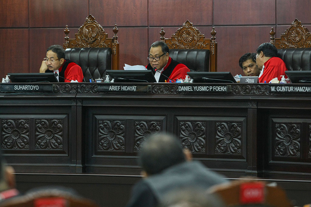 "Terhadap putusan Mahkamah Konstitusi a quo ada pendapat berbeda atau dissenting opinion dari tiga hakim konstitusi," kata Ketua MK Suhartoyo saat persidangan di Gedung MK, Jakarta, Senin, 22 April 2024.