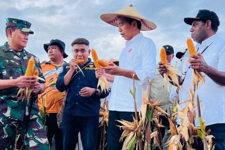 Jakarta: Presiden Joko Widodo mengatakan hasil panen jagung yang dilakukan di lokasi food estate, Kabupaten Keerom, Papua di atas standar nasional