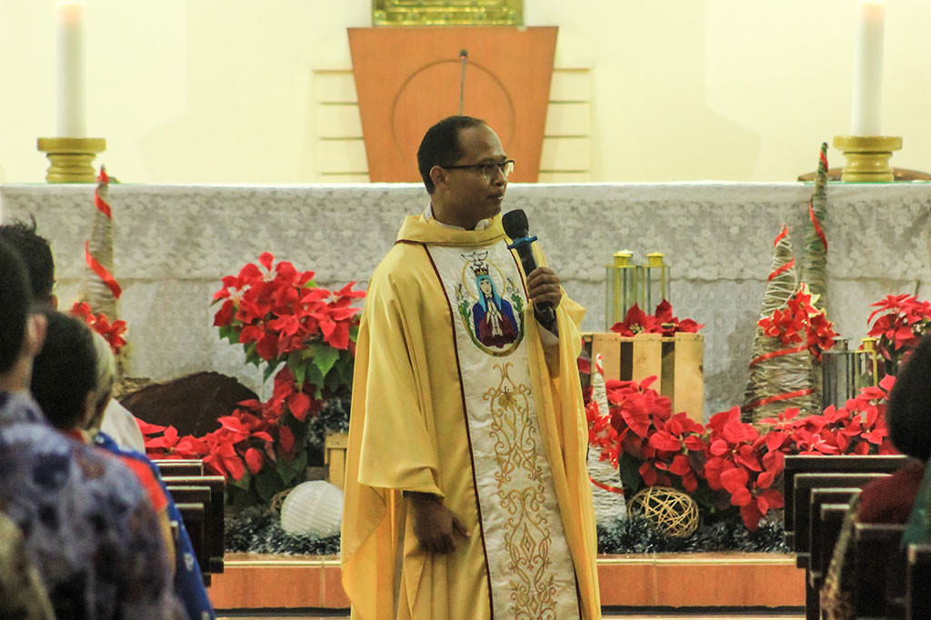 "Kita semua sudah bersukacita. Maka saya kira bukan hanya berhenti pada sukacita, tapi sukacita juga harus diarahkan. Diarahkan kemana ?, diarahkan pada kemuliaan Allah," kata Pastor Paulus Subani, MSF dalam homilinya saat Misa Malam Natal di Kapel Desa Putera.