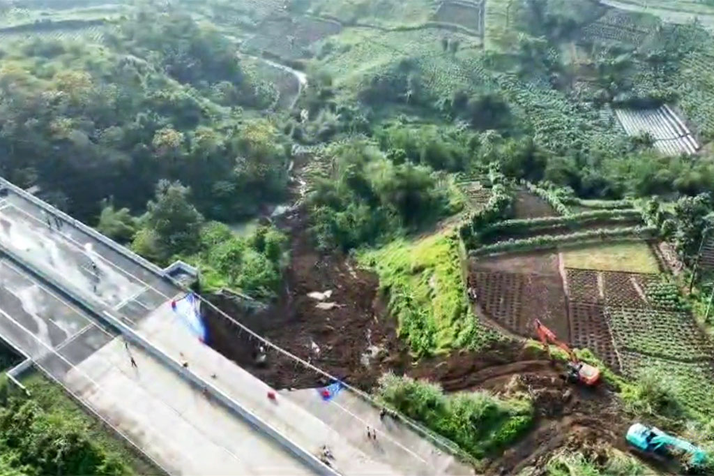 Longsor di Tol Bocimi KM 64-600 A dari arah Jakarta menuju Sukabumi tepatnya di Kampung Sikup, Desa Purwasari, Kecamatan Cicurug, terjadi sekitar pukul 20.00 WIB setelah hujan deras melanda sekitar lokasi. dok. Metro TV Cek Berita dan Artikel yang lain di Google News