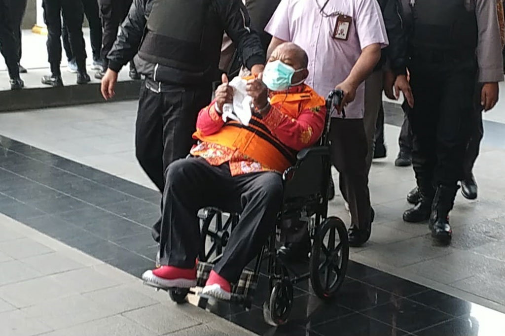 Jakarta: Gubernur Papua Lukas Enembe dibawa ke Gedung Komisi Pemberantasan Korupsi (KPK), Kamis, 12 Januari 2023. Enembe akan diperiksa sebagai tersangka usai menjalani pembantaran penahanan karena kondisi kesehatannya.