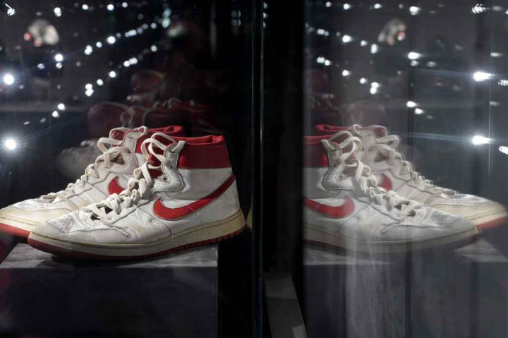 Sepatu merah-putih yang dikenakan oleh pemain ikonik itu di game kelima musim rookie-nya bersama Chicago Bulls terjual USD1.472.000 (sekitar Rp20 miliar).