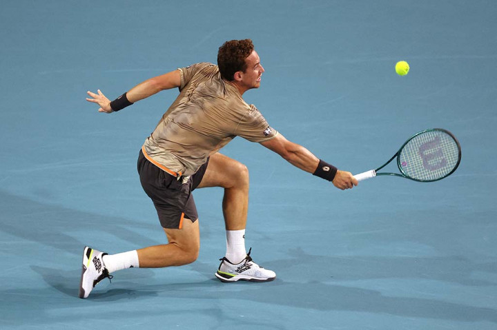 Alcaraz selanjutnya menghadapi pemenang dari pertandingan antara veteran Prancis Gael Monfils dan petenis Australia Jordan Thompson yang sedang dalam performa terbaiknya. AFP PHOTO/Al Bello Cek Berita dan Artikel yang lain di Google News