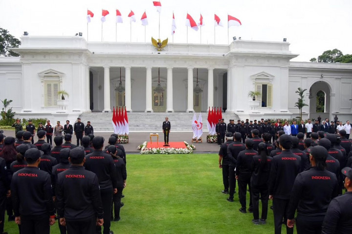 Jakarta: Presiden Joko Widodo (Jokowi) resmi melepas sebanyak 576 kontingen Asian Games 2022 Hangzhou, China, di Istana Merdeka, Jakarta Selasa, 19 September 2023.