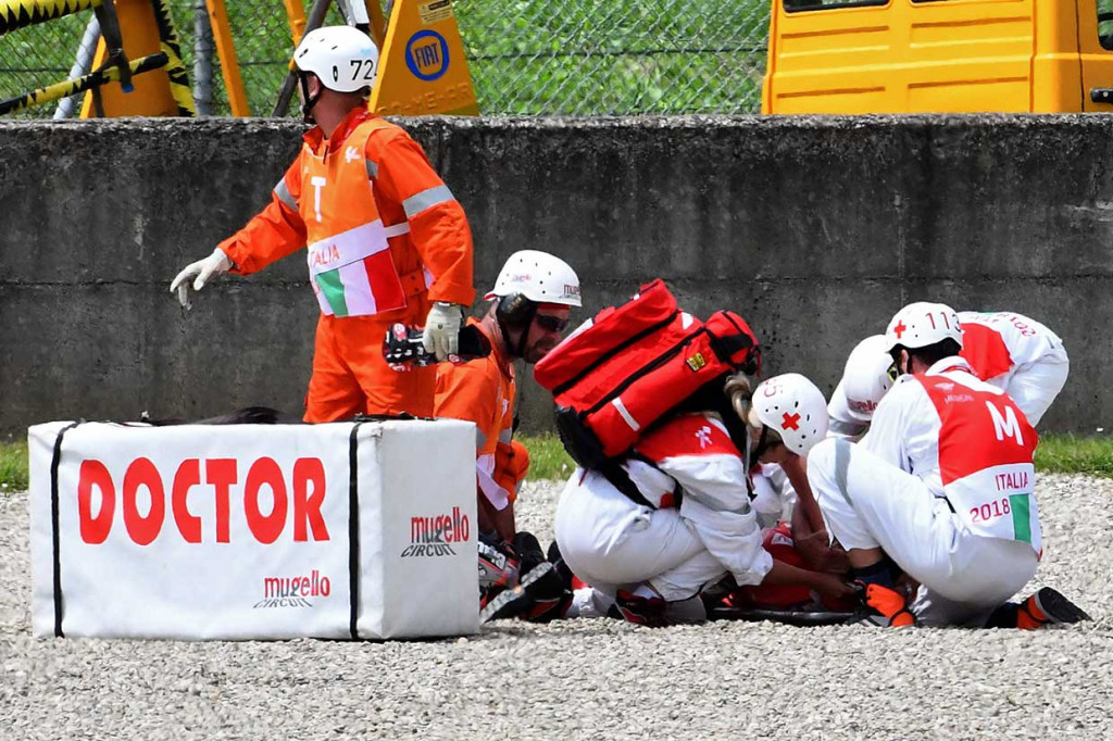 San Pierro: Pembalap Ducati, Michele Pirro, dilarikan ke rumah sakit setelah mengalami kecelakaan fatal selama sesi latihan bebas kedua MotoGP di Mugello, Italia, Jumat, 1 Juni 2018 waktu setempat. Kabar terakhir kondisi Pirro terus membaik. AFP Photo/Tiziana Fabi Cek Berita dan Artikel yang lain di Google News