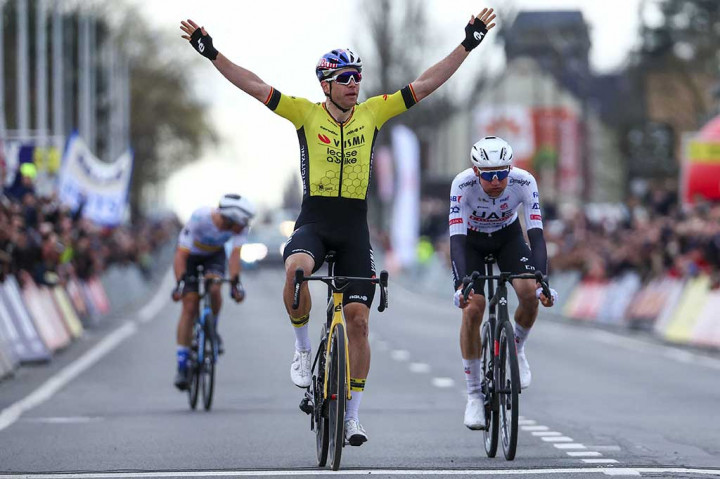 "Sayangnya, Wout van Aert mengalami beberapa patah tulang saat kecelakaan di Dwars door Vlaanderen pada hari ini," demikian pernyataan timnya, Visma, seperti dikutip dari AFP.