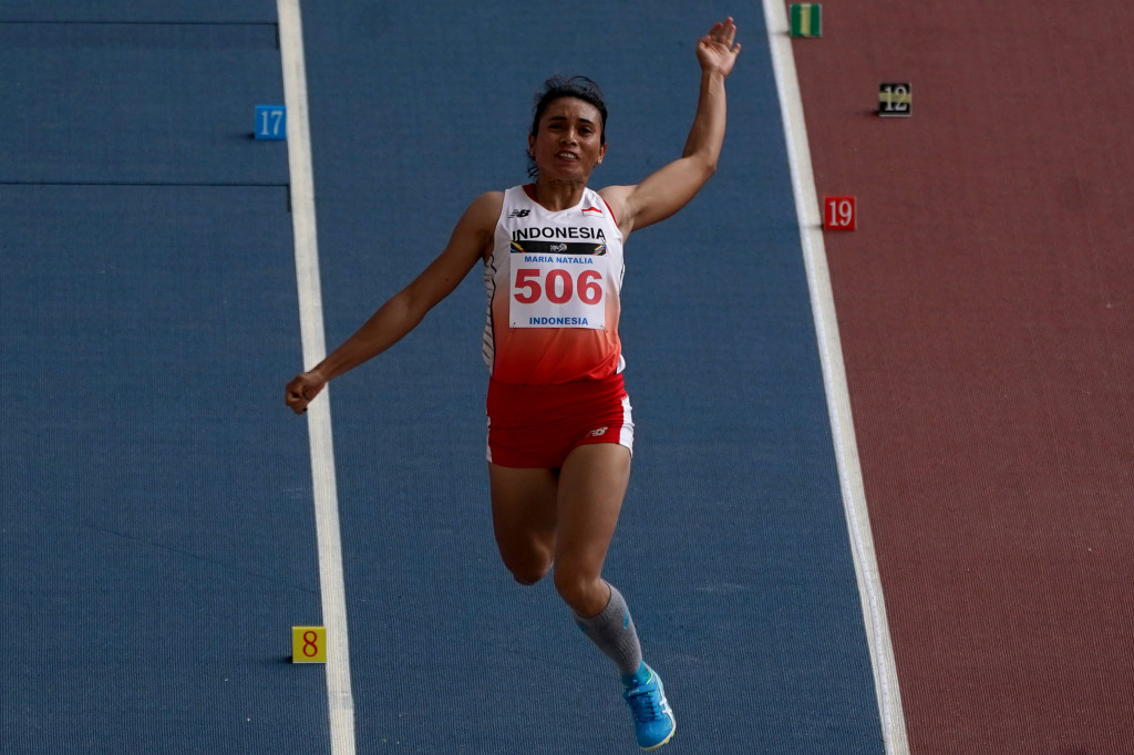 Metrotvnews.com: Maria Londa menorehkan lompatan sejauh 6,47 meter dalam final lompat jauh putri SEA Games XXIX di Stadion Bukit Jalil, Kuala Lumpur, Jumat (25/8/2017). Capaiannya tersebut menambah perbendaharaan medali perunggu kontingen atletik Indonesia. Antara Foto/Sigid Kurniawan Cek Berita dan Artikel yang lain di Google News