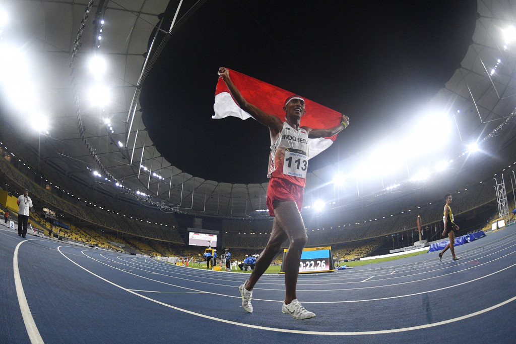 Metrotvnews.com: Agus Prayogo berhasil menjadi yang tercepat dalam pertandingan final lari 10 ribu meter putra SEA Games XXIX di Stadion Bukit Jalil, Kuala Lumpur, Jumat (25/8/2017) malam. Jarak sejauh itu berhasil Agus tempuh dalam waktu hanya 30 meteri 22.26 detik. Antara Foto/Sigid Kurniawan Cek Berita dan Artikel yang lain di Google News