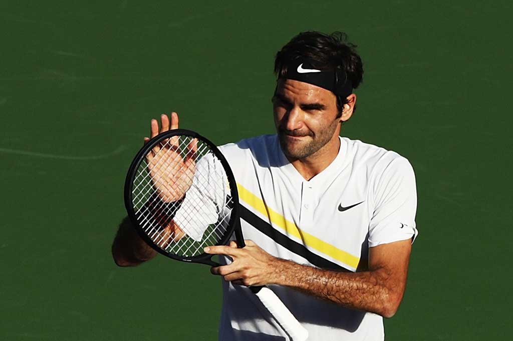 Indian Wells: Petenis nomor satu dunia Roger Federer maju ke perempat final turnamen BNP Paribas Open di Indian Wells, Amerika Serikat, Kamis, 15 Maret 2018, setelah meraih kemenangan 7-5, 6-4 atas petenis Prancis Jeremy Chardy. AFP Cek Berita dan Artikel yang lain di Google News