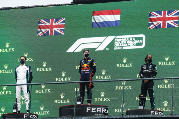Pembalap tim Red Bull Max Verstappen dinyatakan sebagai pemenang Grand Prix Belgia yang diguyur hujan dan hanya menyelesaikan dua putaran di belakang safety car di sirkuit Spa-Francorchamps, Minggu, 29 April 2021. Balapan sempat tertunda tiga jam karena lintasan basah kuyup dan berbahaya.
