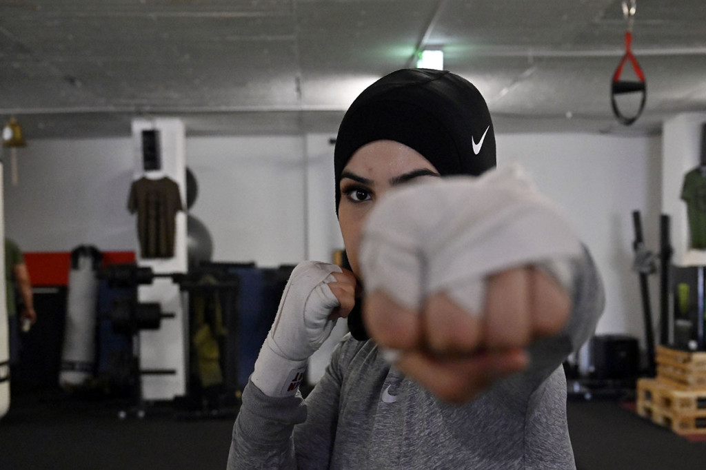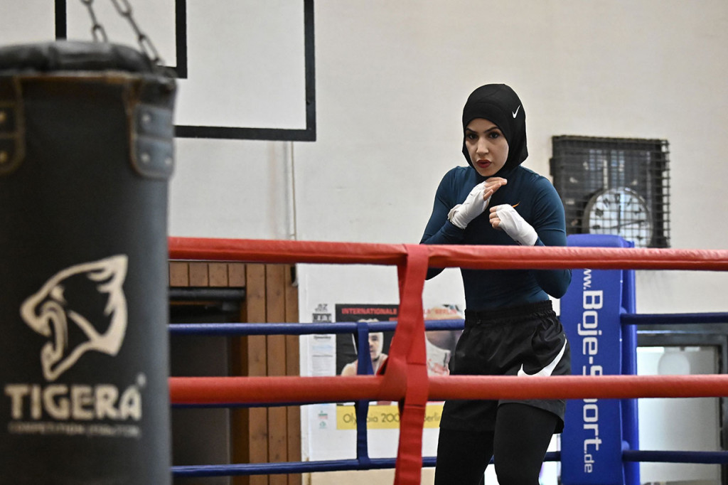 Berlin: Petinju asal Berlin, Zeina Nassar, memiliki semangat juang untuk memenangkan banyak gelar, tetapi perjuangannya untuk mengenakan jilbab di atas ring juga membuatnya menjadi juara di kesempatan yang lain. Zeina saat ini bermimpi untuk bisa tampildi Olimpiade. AFP Photo/Tobias Schwarz Cek Berita dan Artikel yang lain di Google News
