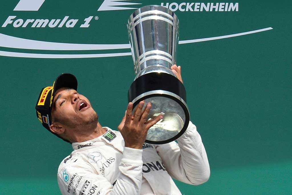 Metrotvnews.com, Hockenheim: Pembalap Mercedes asal Inggris Lewis Hamilton meraih gelar juara di ajang Grand Prix Formula Satu Jerman, di Sirkuit Hockenheim, Minggu (31/7/2016) malam WIB. AFP