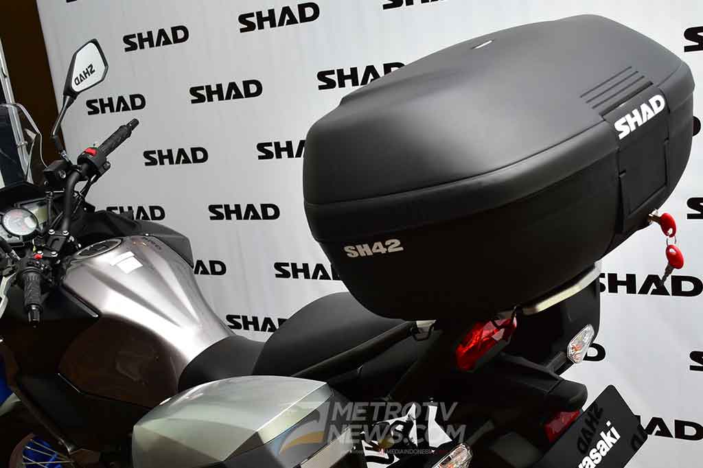 Jakarta: PT Shad Indonesia Motoaccessory memperkenalkan dua boks motor barunya yakni SH58X dan SH42, di Grand Meilia, Jakarta, 9 Desember 2017. SH58X punya keunggulan ukurannya yang bisa dibesar-kecilkan, dan SH42 dengan desain minimalis. Masing-masing boks ini berbanderol Rp3,95 juta dan Rp695 ribu, serta mulai tersedia di pasaran pada Februari 2018. Medcom/ A. Harry Budiawan