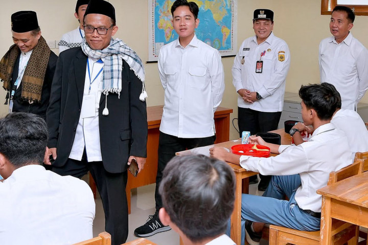 Kabupaten Bogor: Wakil Presiden (Wapres) Gibran Rakabuming Raka melakukan sosialisasi Program Makan Bergizi Gratis dengan menu seharga Rp11 ribu per porsi di Pondok Pesantren Muhammadiyah Boarding School Kabupaten Bogor, Jawa Barat, Rabu, 11 Desember 2024.