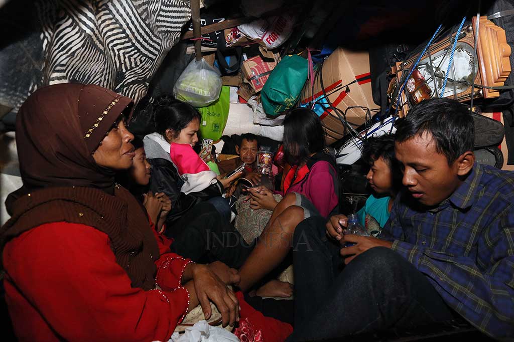 Metrotvnews.com, Brebes: Sebuah keluarga pemudik yang harus berdesakan dalam mobil bak terbuka, istirahat di pintu keluar tol Brebes Timur, Brebes, Jawa Tengah, Rabu (21/6/2017) dini hari. Banyak pemudik rela berdesakan agar dapat merayakan Idul Fitri di kampung halaman, dengan membawa berbagai macam barang bawaan mulai dari perabotan rumah tangga, pakaian, dan oleh-oleh untuk sanak saudara sebagai hasil kerja keras mereka di Ibu Kota. MI/Ramdani Cek Berita dan Artikel yang lain di Google News