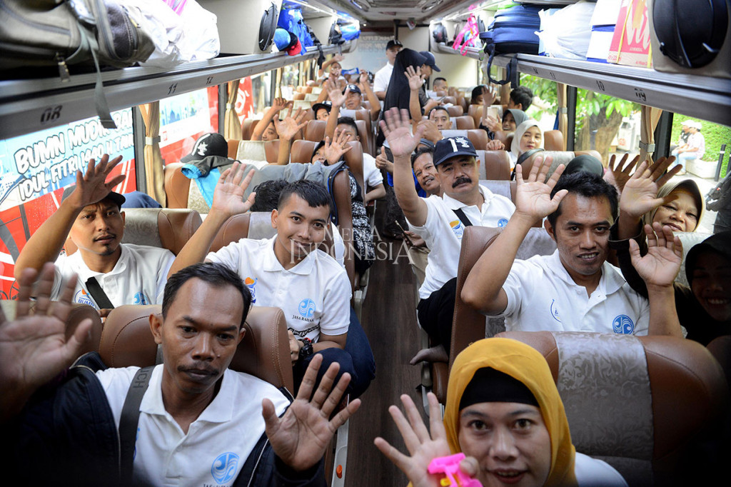 Jakarta: Menteri BUMN Rini Soemarno melepas keberangkatan pemudik dalam Program Mudik Bareng BUMN 2019 di kawasan Gelora Bung Karno, Jakarta, Kamis, 30 Mei 2019. Pada 2019, 104 BUMN bersinergi memberangkatkan 250.474 pemudik secara gratis. MI/Antara Cek Berita dan Artikel yang lain di Google News
