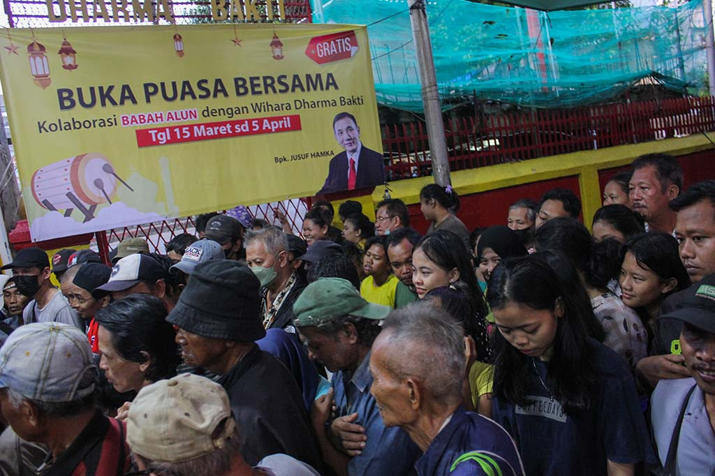Pantauan Medcom.id, Senin, 25 Maret 2024 pukul 17.30 WIB, masyarakat nampak sudah mengantre panjang di dalam wihara untuk mendapatkan makanan dan minum secara gratis untuk berbuka puasa.