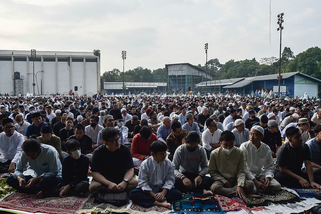 Jakarta: Ribuan warga sejak Jumat, 21 April 2023 pagi, pukul 05.30 WIB tampak antusias datang ke Lapangan Softball Lodaya, Kota Bandung, Jawa Barat, untuk melaksanakan Salat Idulfitri 1444 Hijriah/2023 Masehi, yang diadakan oleh PW Muhammadiyah Jawa Barat.