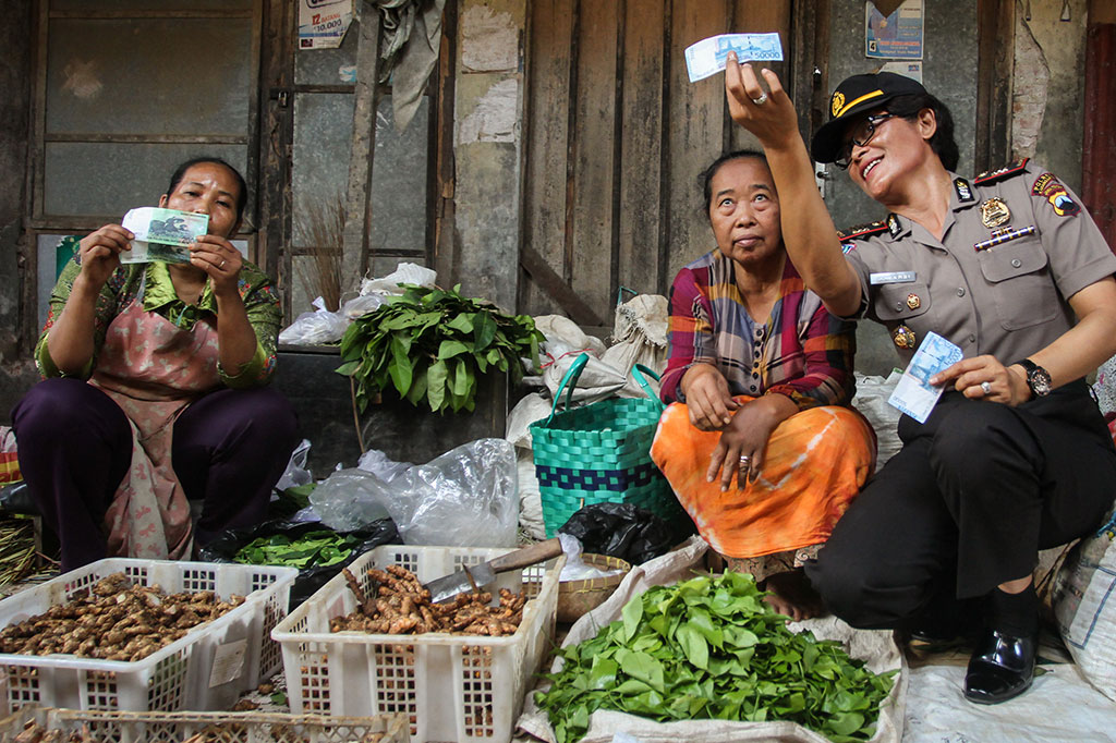 Metrotvnews.com, Karanganyar: Anggota kepolisian menjelaskan kepada pedagang cara mengenali uang palsu saat kegiatan sosialisasi mengenali uang palsu di Pasar Jungke, Karanganyar, Jawa Tengah, Jumat (9/6/2017). Kegiatan tersebut untuk langkah antisipasi peredaran uang palsu dalam aktivitas jual beli di pasar saat Ramadan dan menjelang Lebaran. ANTARA/Mohammad Ayudha Cek Berita dan Artikel yang lain di Google News