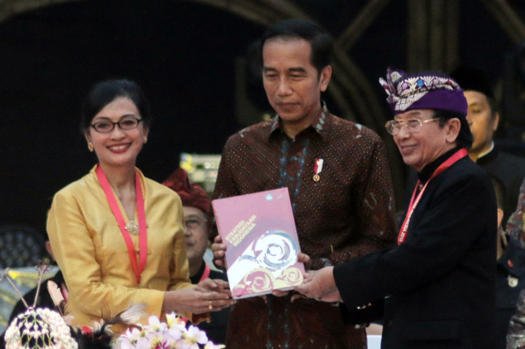 Jakarta: Presiden Joko Widodo menerima naskah Strategi Kebudayaan sebagai rangkaian acara Kongres Kebudayaan Indonesia Tahun 2018, di Jakarta, Minggu, 9 Desember 2018. Antara Foto/Rivan Awal Lingga Cek Berita dan Artikel yang lain di Google News