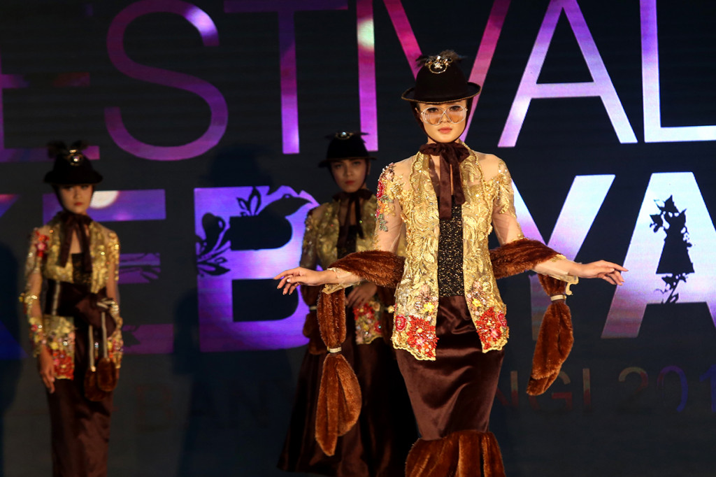 Sebanyak 100 karya kebaya seni modern hasil kolaborasi perancang nasional dengan desainer lokal Banyuwangi dipamerkan dalam acara ini.
