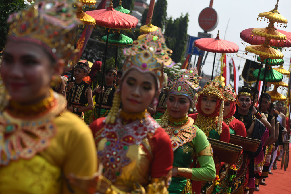 Mojokerto: Kirab Budaya Mojobangkit digelar dalam rangka memperingati Hari Jadi ke 101 Kota Mojokerto, Kamis, 27 Juni 2019. Kirab yang menampilkan sejumlah budaya kesenian Jawa Timur tersebut mengangkat tema Spirit of Majapahit. Antara Foto/Zabur Karuru