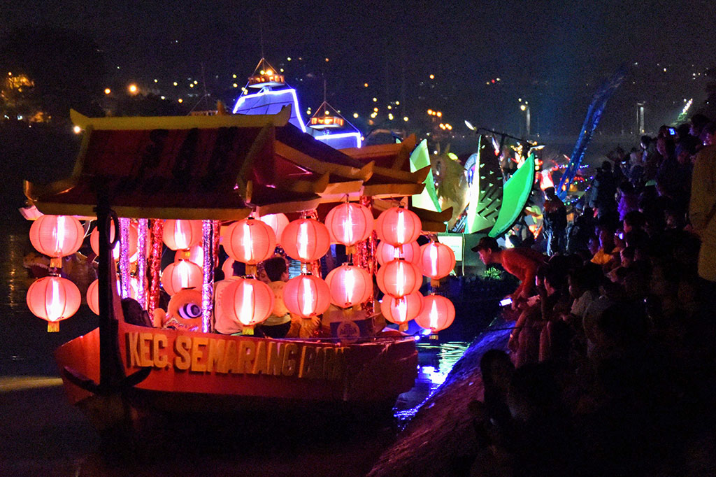 Metrotvnews.com, Semarang: Peserta bersiap mengikuti Lomba Perahu Hias pada Festival Banjir Kanal Barat di Semarang, Jawa Tengah, Sabtu (21/5/2016) malam. Penyelenggaraan festival dalam rangka memperingati HUT ke-469 Kota Semarang tersebut diikuti puluhan perahu yang dihias dengan beragam bentuk dan diharapkan bisa menjadi salah satu agenda yang mampu menarik wisatawan. ANTARA/R. Rekotomo