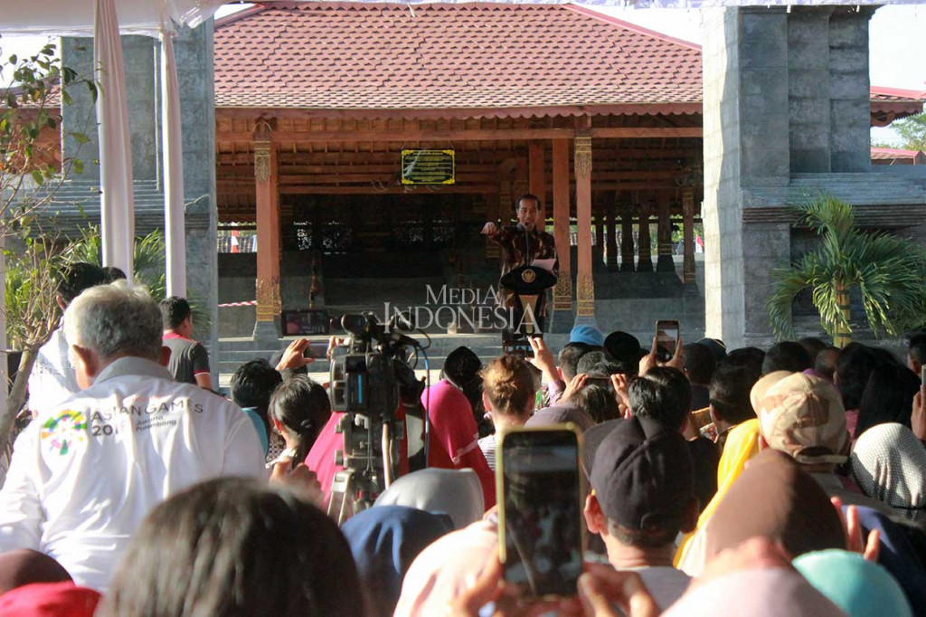 Yogyakarta: Presiden Joko Widodo mengajak masyarakat menonton film 'Sultan Agung: The Untold Love Story' yang akan diluncurkan pertama pada 9 Agustus 2018 mendatang. Hal itu dikatakan Jokowi dalam acara penyerahan hibah Studio Alam Sultan Agung di Dusun Gamplong, Moyudan, Sleman, DIY, Minggu, 15 Juli 2018. MI/Antara
