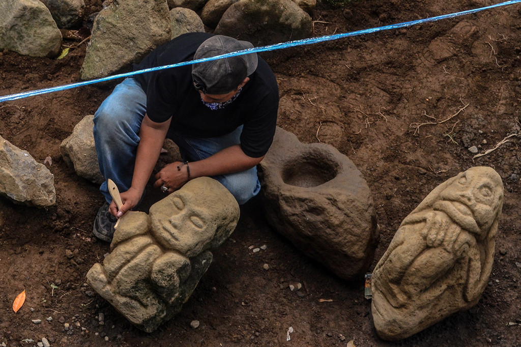 Tasikmalaya: Warga menemukan puluhan patung diduga batu artefak di kawasan objek wisata batu Mahpar tepatnya di Kampung Tegal Munding, Desa Linggawangi, Kecamatan Leuwisari, Kabupaten Tasikmalaya. ANTARA FOTO/Adeng Bustomi Cek Berita dan Artikel yang lain di Google News