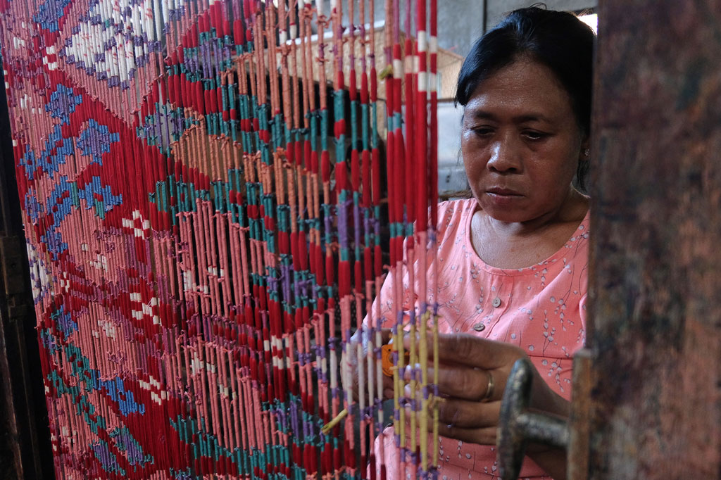 Tangan-tangan perempuan paruh baya itu tampak lincah memainkan alat-alat tradisional saat mereka menyelesaikan selembar kain tenun ikat khas Bali yang disebut Endek. Mungkin karena sudah terbiasa dan terlatih, matanya tetap jeli melihat benang yang umumnya terlihat begitu kecil bagi orang seumuran mereka. Tangannya yang keriput pun masih terlihat lincah membuat motif pada benang tenun.