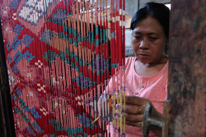Denpasar: Tangan-tangan perempuan paruh baya itu tampak lincah memainkan alat-alat tradisional saat mereka menyelesaikan selembar kain tenun ikat khas Bali yang disebut Endek. Mungkin karena sudah terbiasa dan terlatih, matanya tetap jeli melihat benang yang umumnya terlihat begitu kecil bagi orang seumuran mereka. Tangannya yang keriput pun masih terlihat lincah membuat motif pada benang tenun.