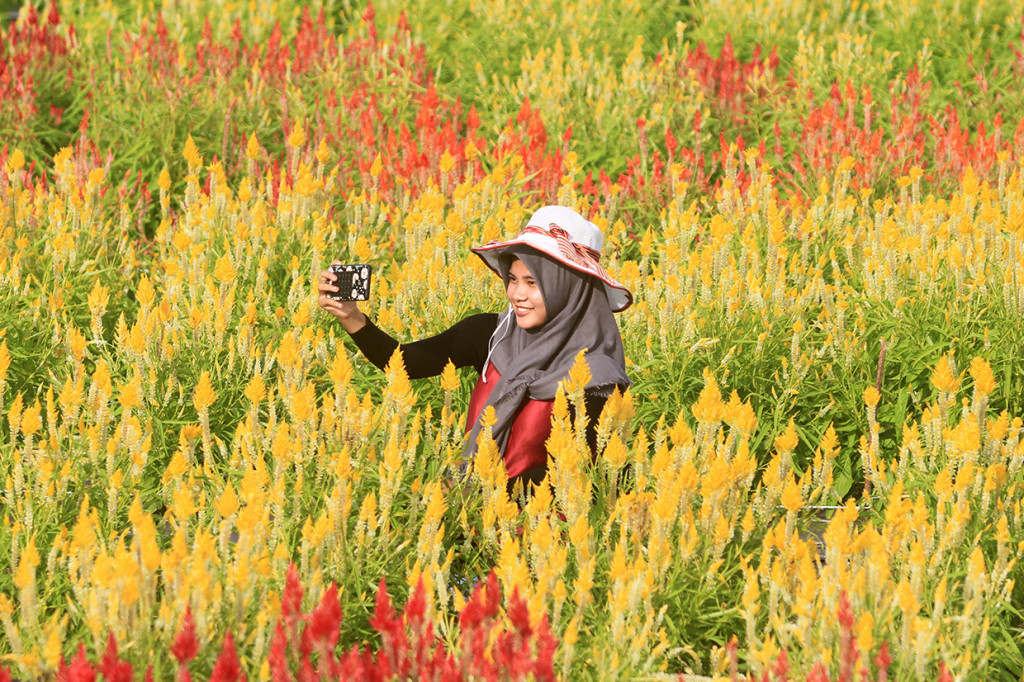 Aceh Jaya: Objek wisata taman bunga celocia garden berada di Desa Alue Pit, Kecamatan Panga, Aceh Jaya, Aceh. Pemilik taman bunga mengaku, taman bunga celocia seluas satu hektar yang baru dikelola sekitar empat bulan tersebut banyak dikunjungi wisatawan dari berbagai daerah setelah sempat viral di media sosial. Antara Foto/Syifa Yulinnas Cek Berita dan Artikel yang lain di Google News