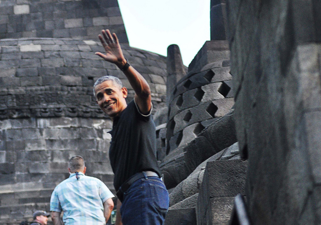Metrotvnews.com: Setelah lima hari di Bali, Barrack Obama dan keluarga melanjutkan liburannya ke Candi Borobudur, Magelang, Jawa Tengah, Rabu (28/6/2017). Mantan Presiden Amerika Serikat tersebut sempat melewatkan masa kecilnya di Yogyakarta selama beberapa tahun. (Antara Foto/Anis Efizudin)