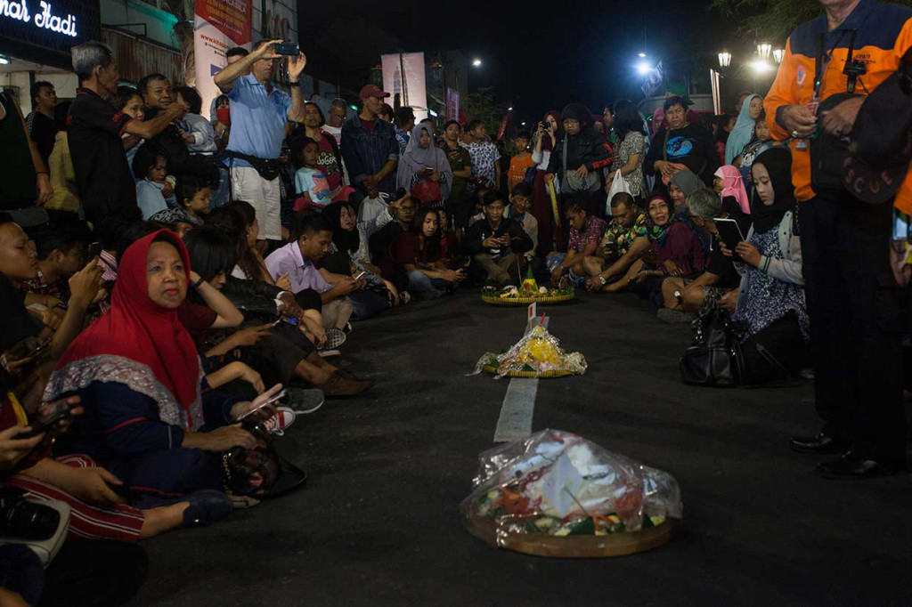Yogyakarta: Gubernur Daerah Istimewa Yogyakarta Sri Sultan Hamengku Buwono X menyantap nasi tumpeng bersama ribuan warga dalam acara 'Dhahar Kembul Tumpengan Pancasila' di Jalan Malioboro, Yogyakarta, Selasa, 7 Agustus 2018 malam. Antara Foto/Andreas Fitri Atmoko Cek Berita dan Artikel yang lain di Google News