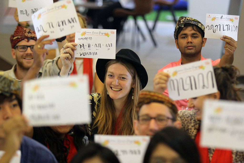 Surabaya: Puluhan mahasiswa dari 10 negara belajar menulis aksara Jawa saat mengikuti 'Ubaya Summer Program 2019' di Universitas Surabaya (Ubaya), Surabaya, Jawa Timur, Kamis, 29 Agustus 2019. Antara Foto/Moch Asim Cek Berita dan Artikel yang lain di Google News