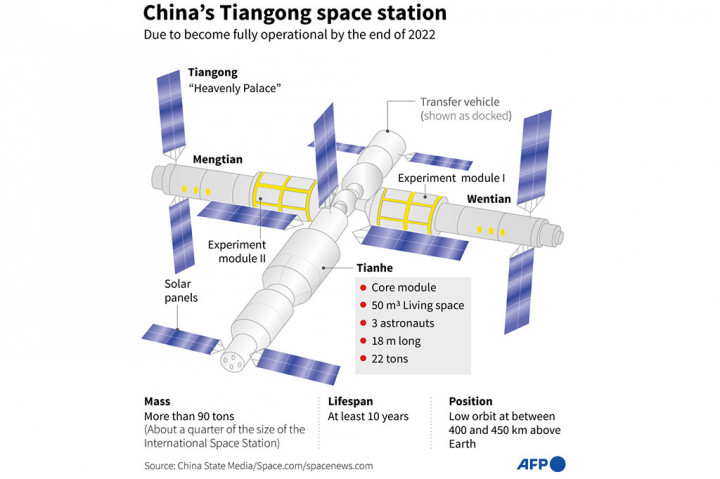 "Selama tinggal, kru Shenzhou-15 akan menyambut kapal kargo Tianzhou-6 yang berkunjung dan menyerahkan (operasi ke) pesawat ruang angkasa berawak Shenzhou-16, dan berencana untuk kembali ke lokasi pendaratan Dongfeng pada Mei tahun depan." AFP PHOTO/CNS Cek Berita dan Artikel yang lain di Google News