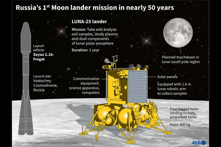 Peluncuran wahana antariksa Luna-25 adalah misi bulan pertama Moskow sejak 1976, ketika Uni Soviet menjadi pelopor dalam penaklukan ruang angkasa.